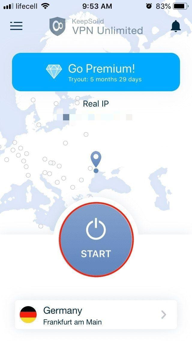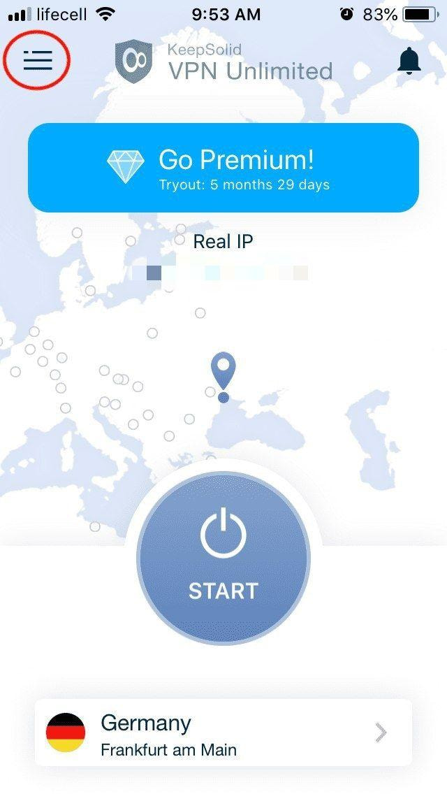 1. Starten Sie die neueste Version der Anwendung VPN Unlimited auf Ihrem iOS-Gerät.
