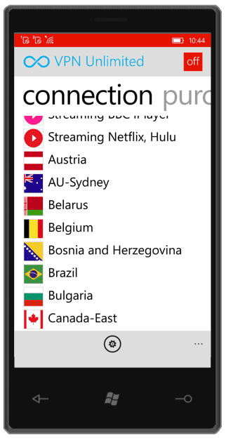 This is a security solution that provides Windows Phone users with complete data protection, online anonymity, and unlimited access to any geo-restricted content. VPN Unlimited can serve as a bright example of a VPN for Windows Phone.
