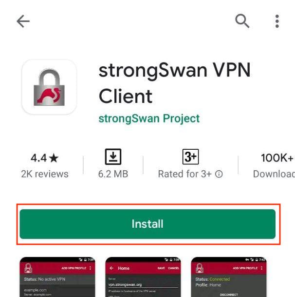 1. Install a strongSwan VPN Client from the Google Play Store.