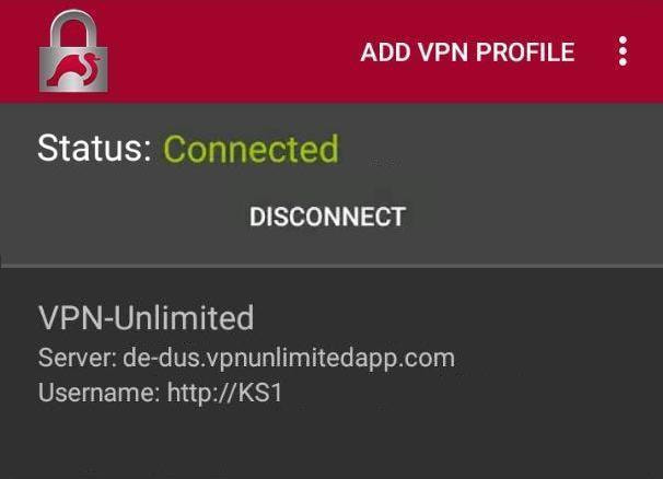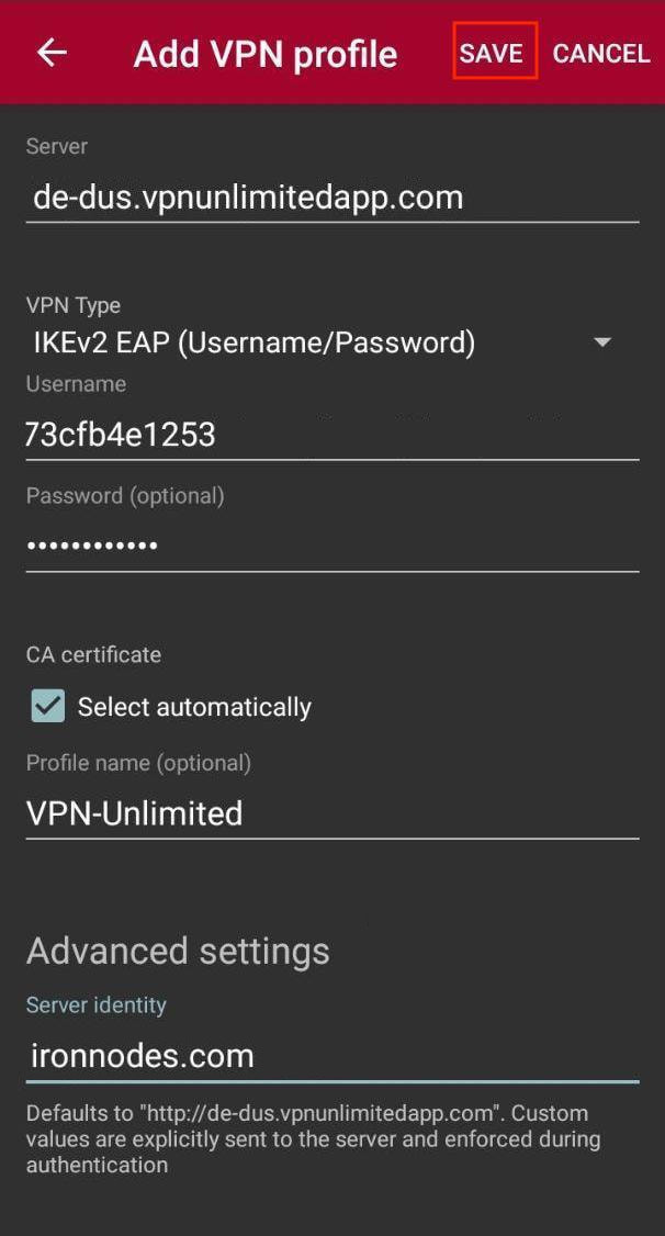 • Profile name: enter the desired connection name, for example, VPN-Unlimited