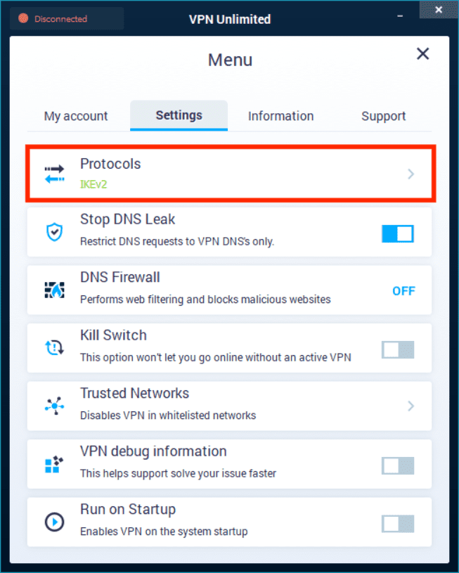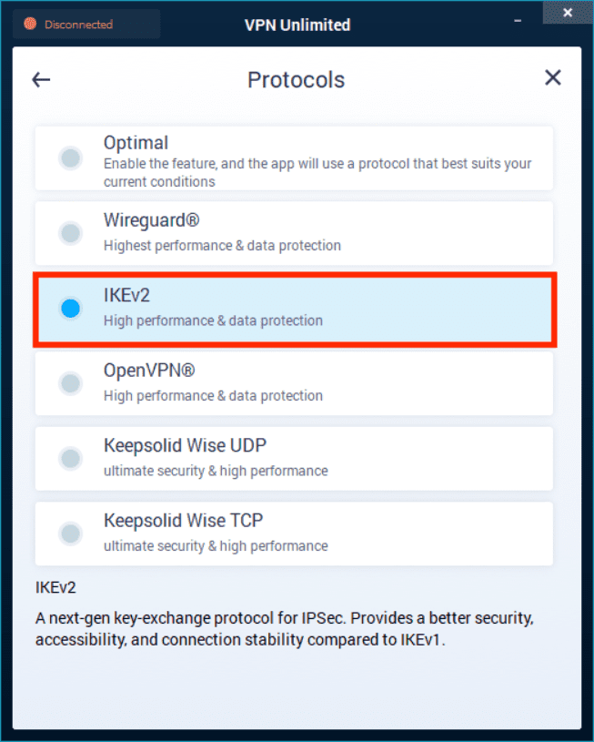 IKEv2 proves itself to be extremely secure while also demonstrating high stability, performance, and connection speed. Therefore, it will be no wonder if you decide to use the IKEv2 protocol on your device. More information about its features you can find on the page What is the IKEv2 protocol?