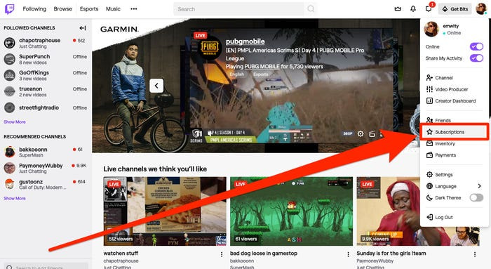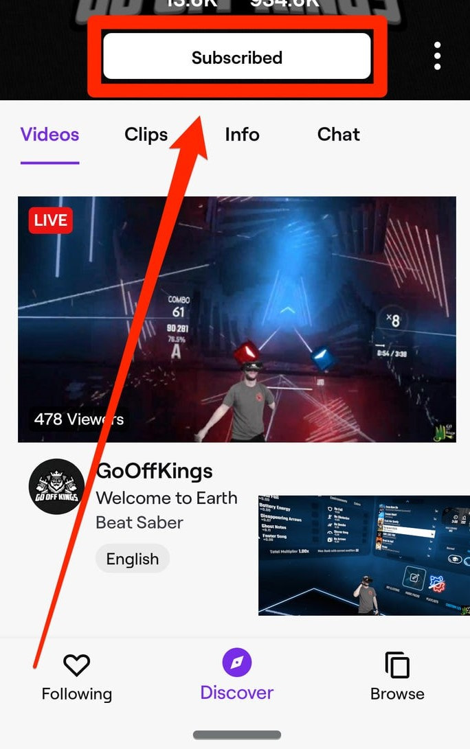Step 1: Log into your account using the Twitch app for Android to access the channels you're subscribing to. Then hit the Subscribed button.