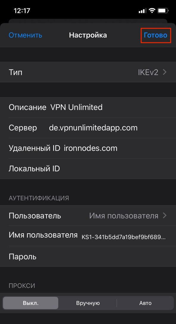 • Описание: введите название на ваш выбор, например VPN Unlimited (IKEv2)