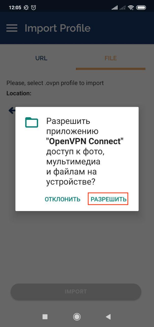 3. Выберите соответствующий файл с VPN конфигурациями, нажмите Import.