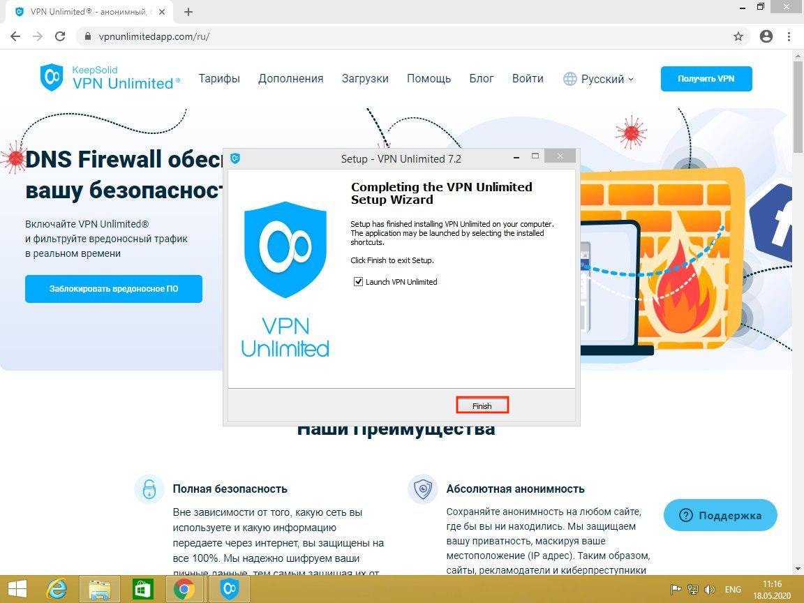 Если вы оставите флажок, ваш Windows 8 VPN клиент от KeepSolid автоматически запустится после нажатия кнопки Finish.