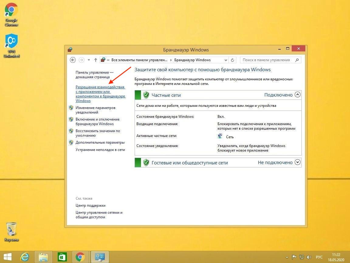 Если вы случайно отказали в доступе к этим файлам, откройте брандмауэр Windows: Пуск > Панель управления > Брандмауэр Windows. Выберите пункт Разрешить запуск программы или компонента через брандмауэр Windows.