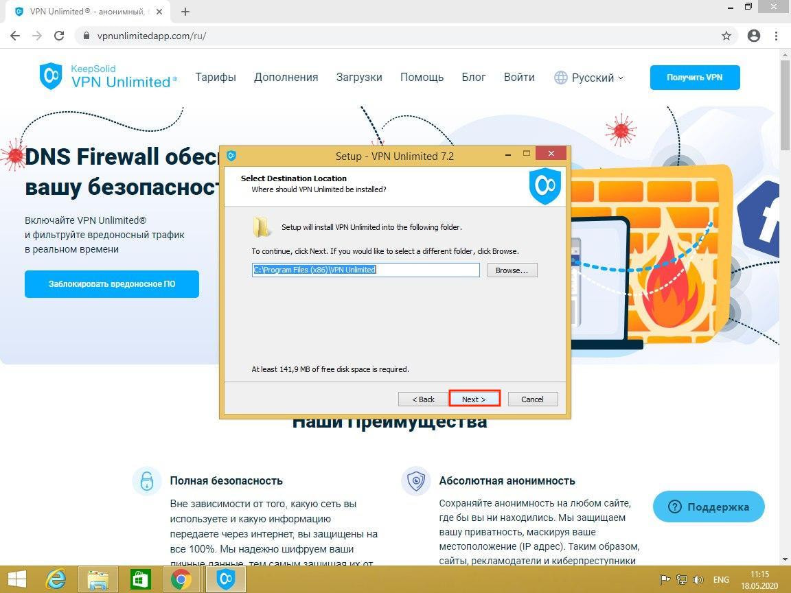 Чтобы продолжить установку VPN Unlimited, нажмите Yes.