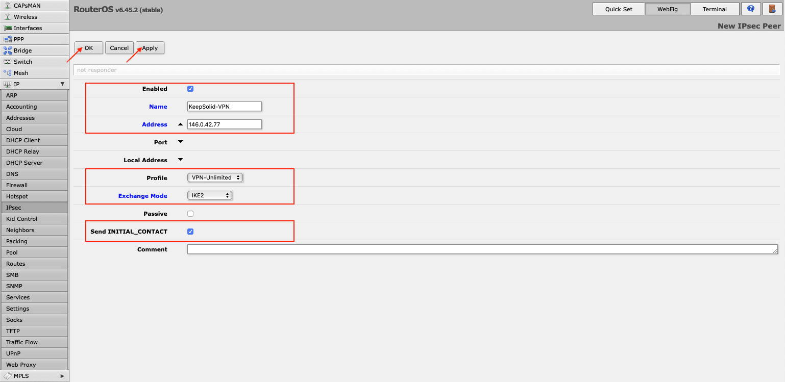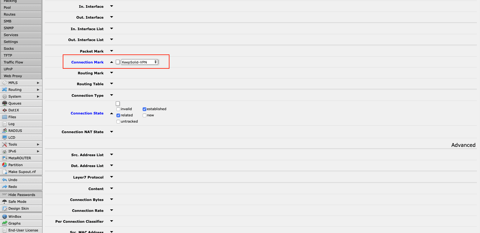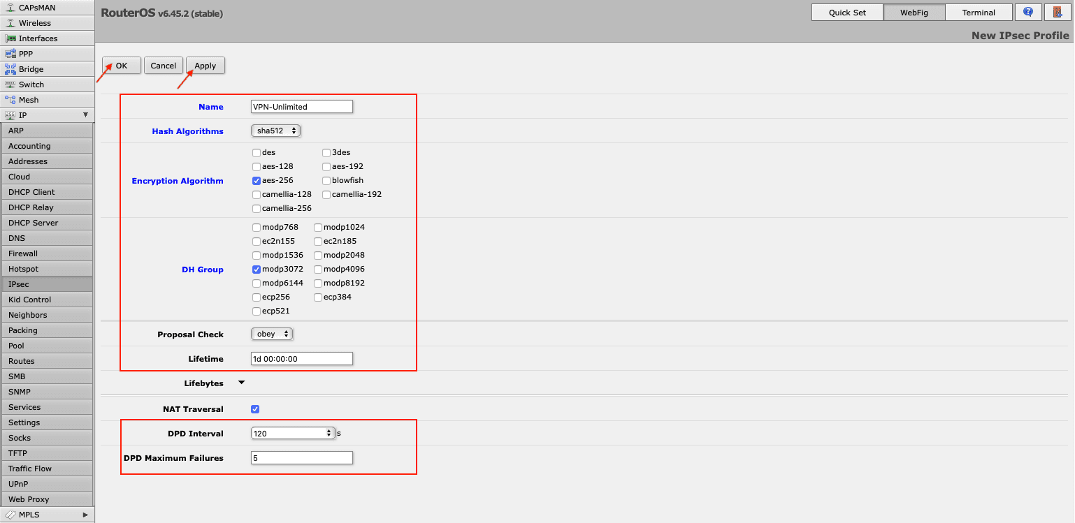 本指南详细介绍了如何在 Mikrotik(装有 RouterOS v.6.45 及以上版本)上使用 VPN Unlimited 设置配置 IKEv2 连接。用我们的指南完成您 Mikrotik 客户端上的 VPN 设置,通过 VPN Unlimited 让您的在线体验变得私密、安全且不受限制。