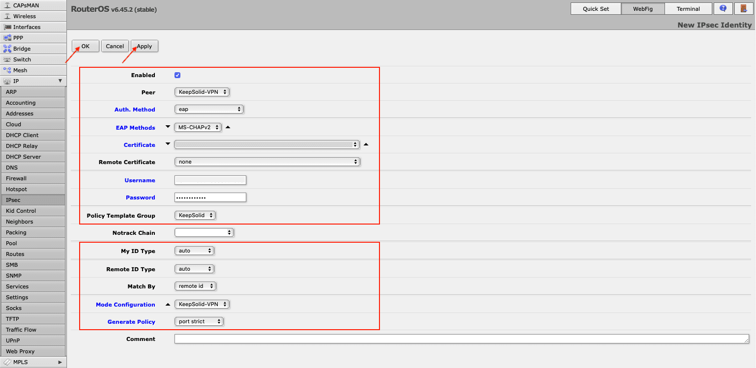 II. 在 Mikrotik 上配置 IKEv2 连接